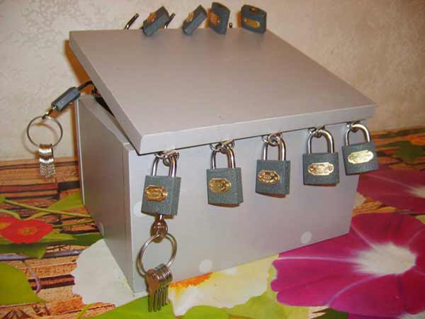 - Подбери ключ, открой первым пять замков на своей стороне, подними крышку шкатулки, и забирай свой приз.