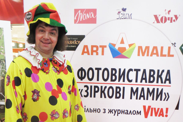 Клоун на выставке картин "Звездные мамы", "Арт-молл"