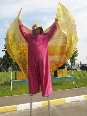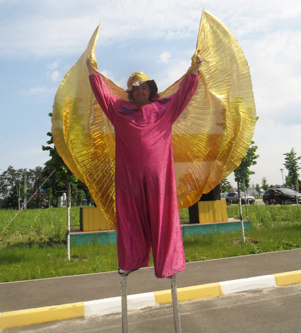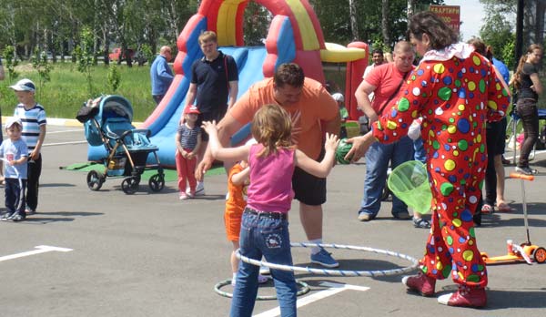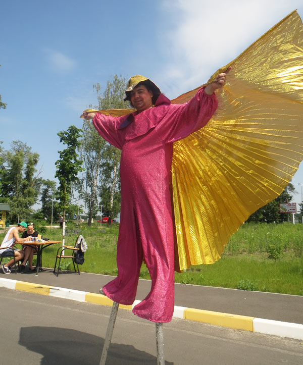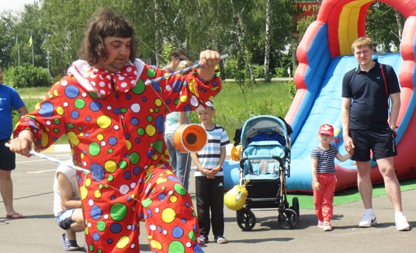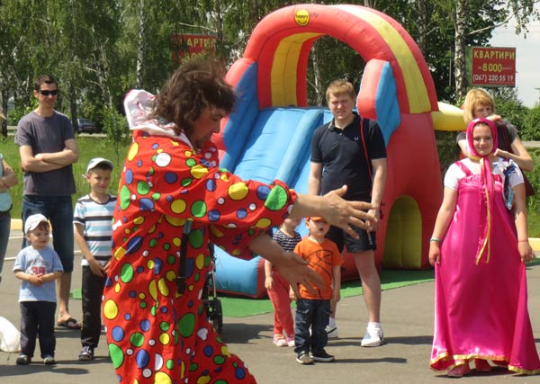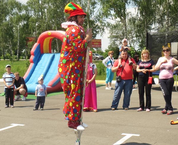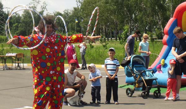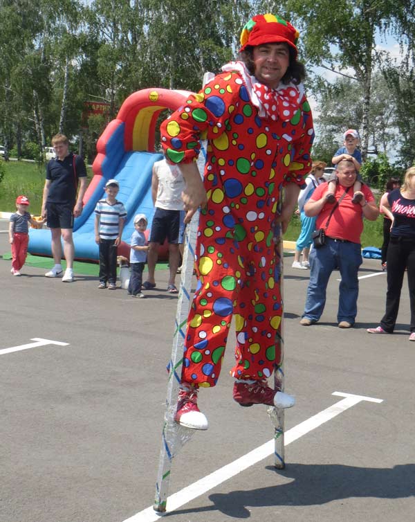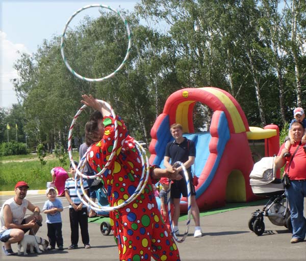 Летняя праздничная ярмарка с развлечениями, Крылатым ходулистом и клоуном с цирковым представлением и дальнейшими играми с мастер классом по твистингу. 31/05. 2015 г.