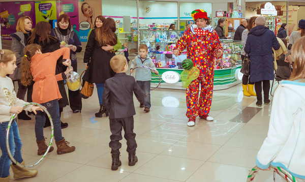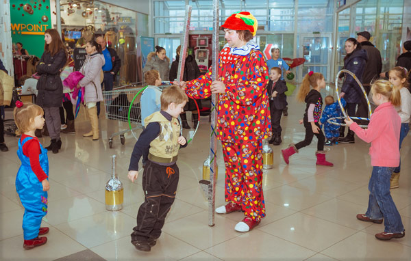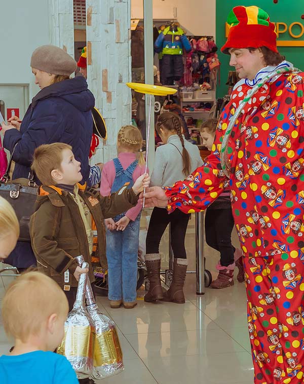 Клоун развлекает посетителей в ТЦ "Полярный"-2