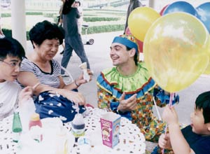 Клоун в парке отдыха Тайваня развлекает посетителей
