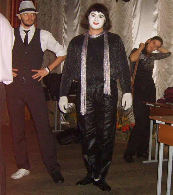 Подготовка к выступлению на сцене, с пантомимой в сопровождении дебютной песни студентки.