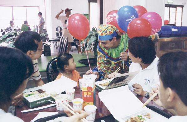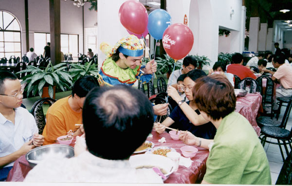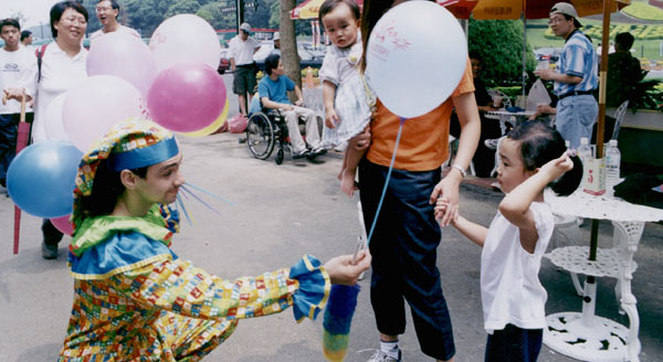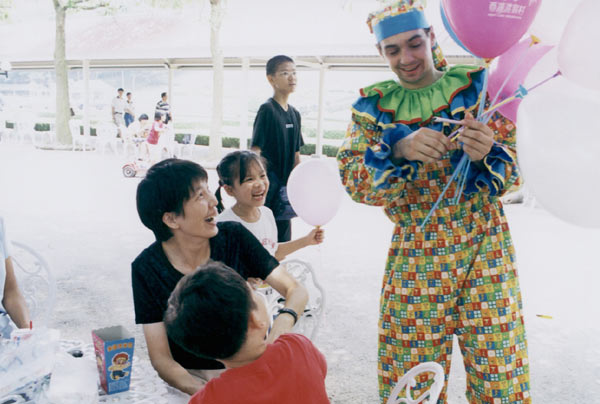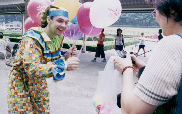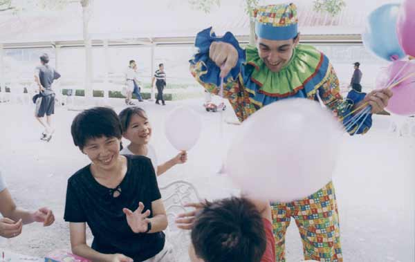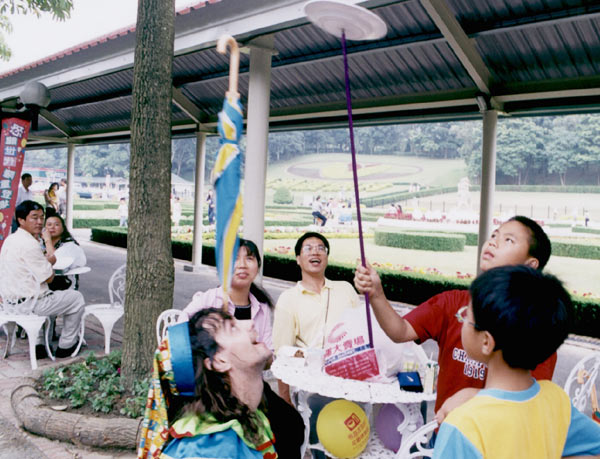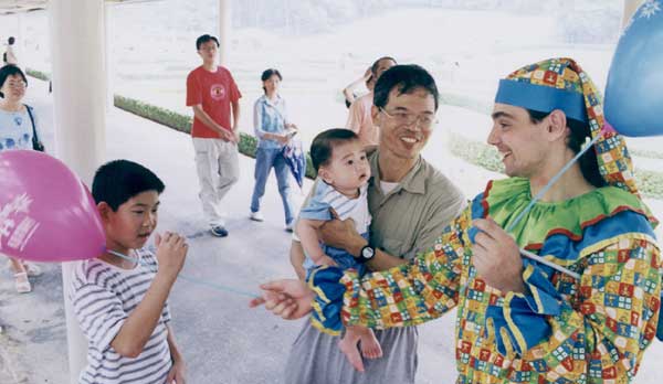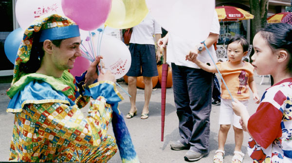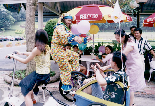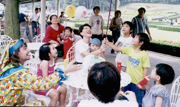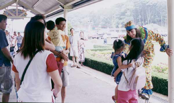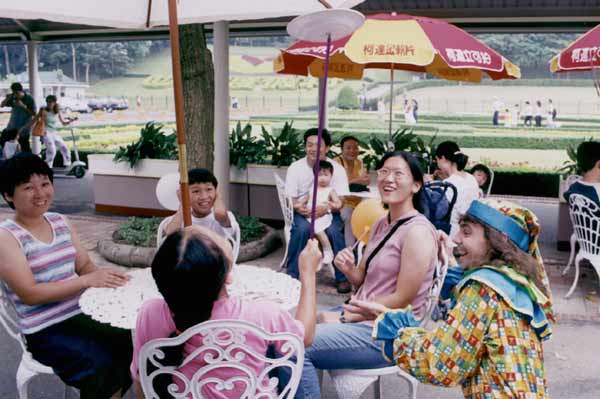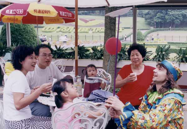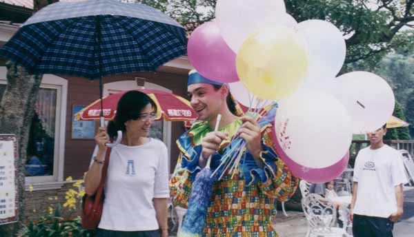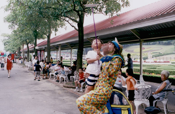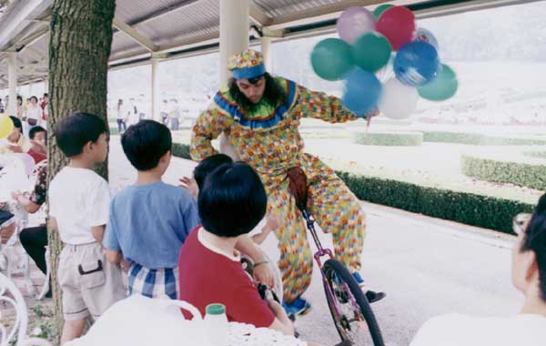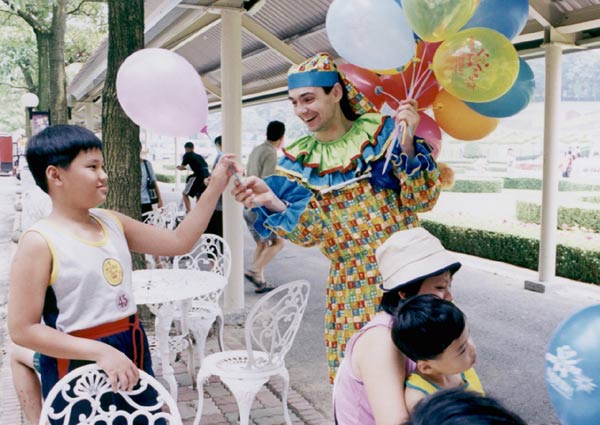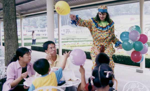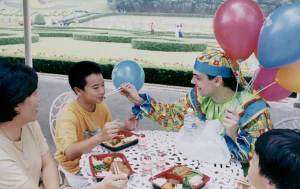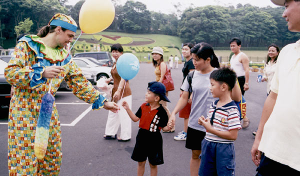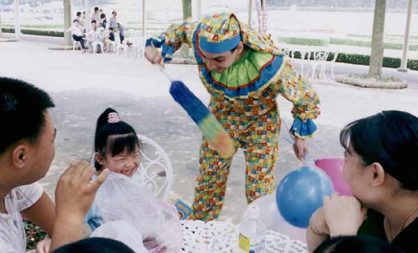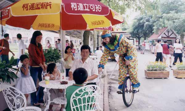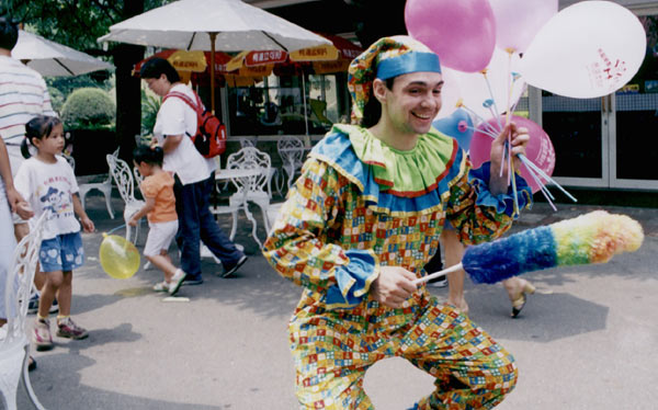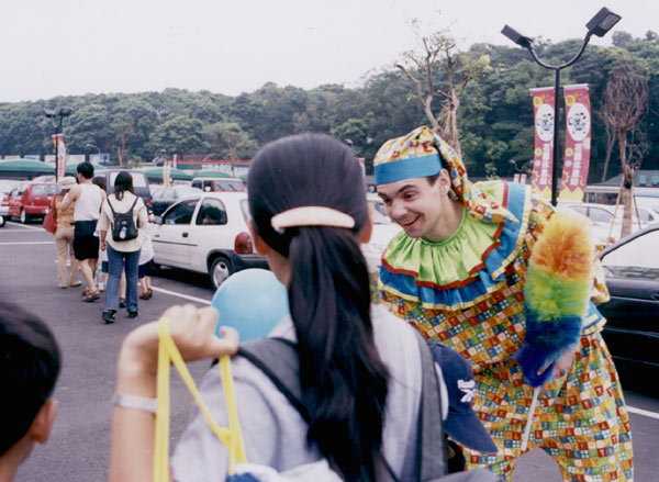 Парк отдыха Тайваня. Клоун развлекает отдыхающих.