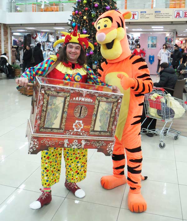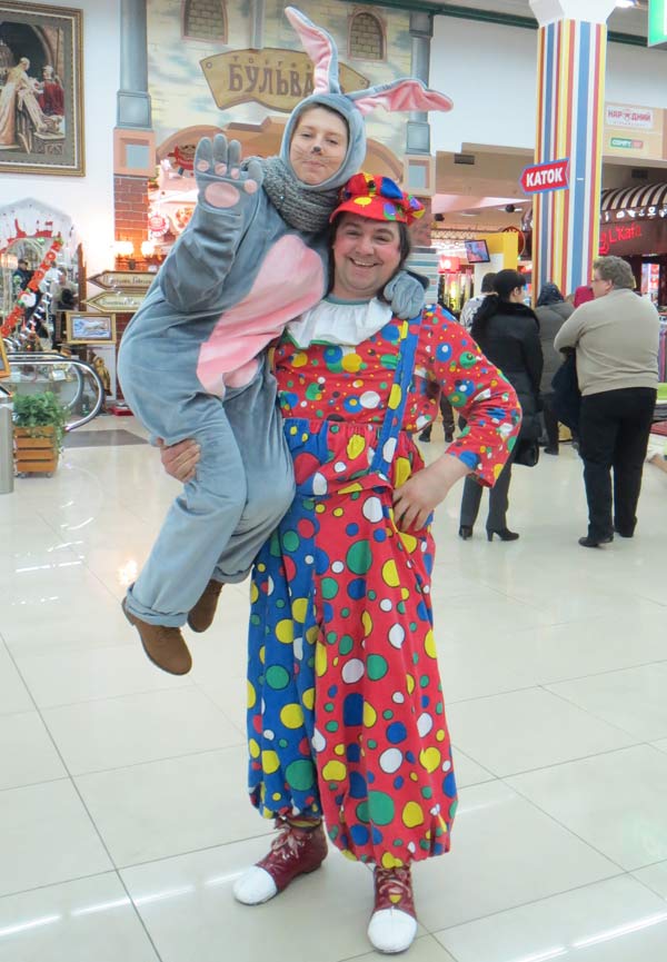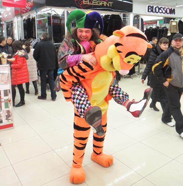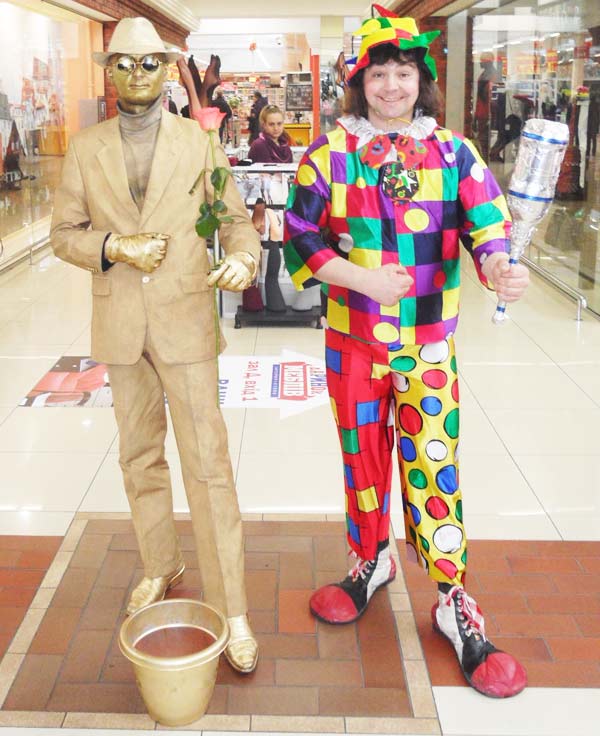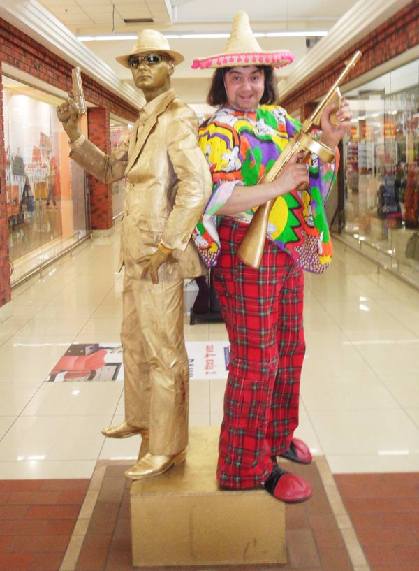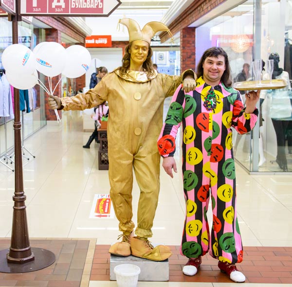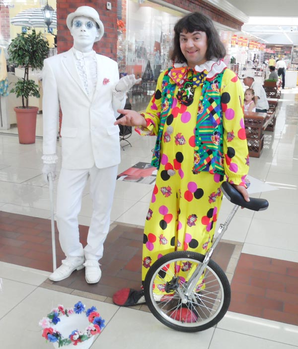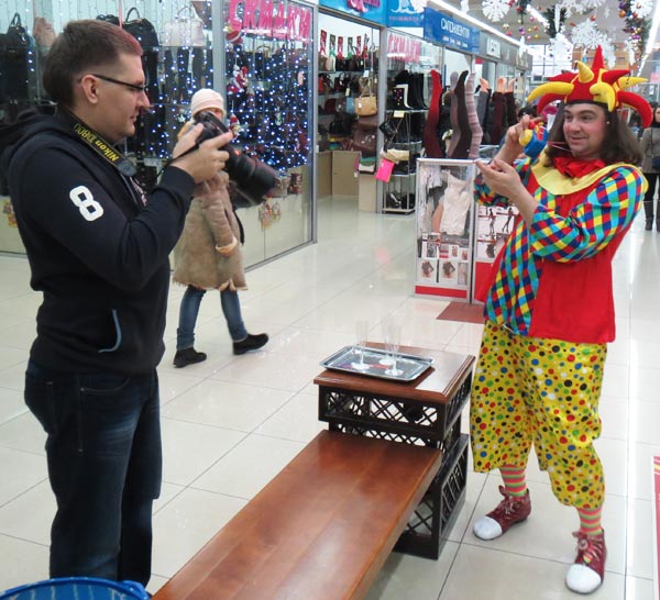 ![]() Охрана в ТЦ стоит на видном месте, а начальник охраны вообще замаскировался под клоуна |