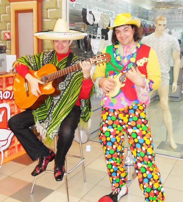 ![]() Они споют вам, а я спляшу, точнее еще и мини представление жонгляж, моноцикл, ходули... |