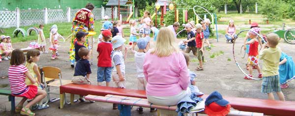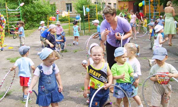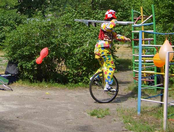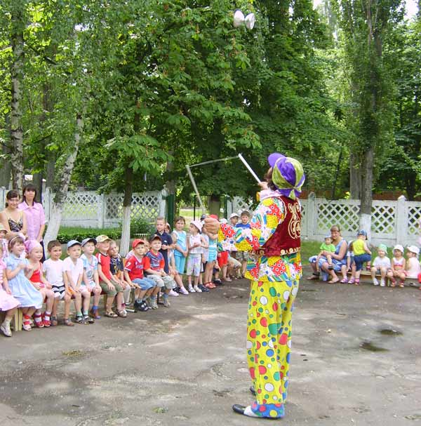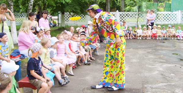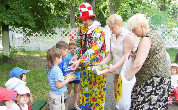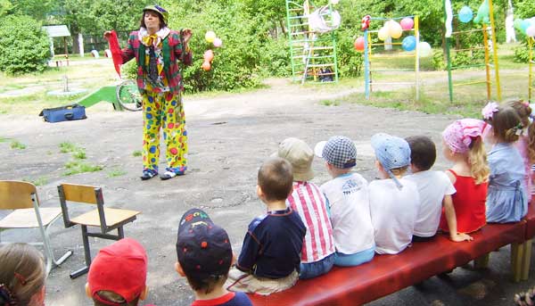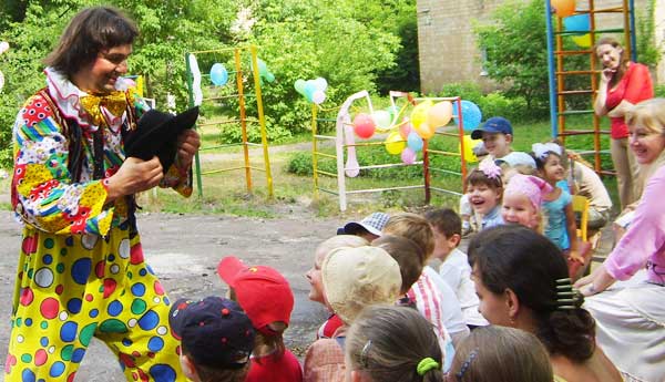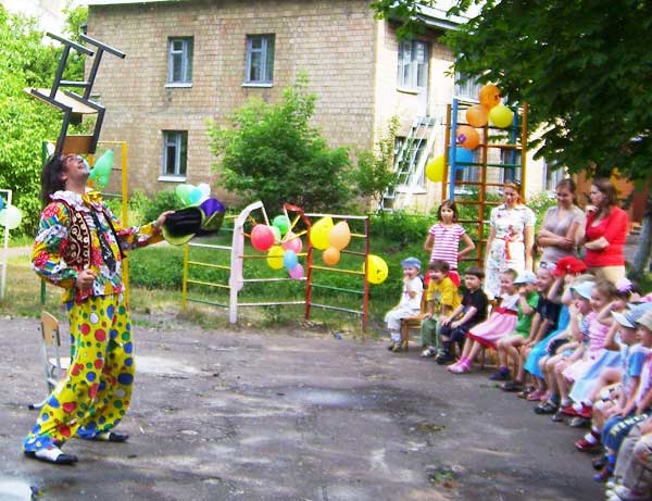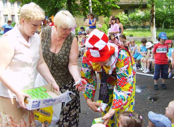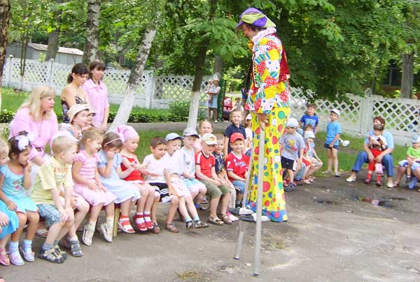 На открытом воздухе, вместе с интерактивом и подарками в день празднования международного дня защиты детей.