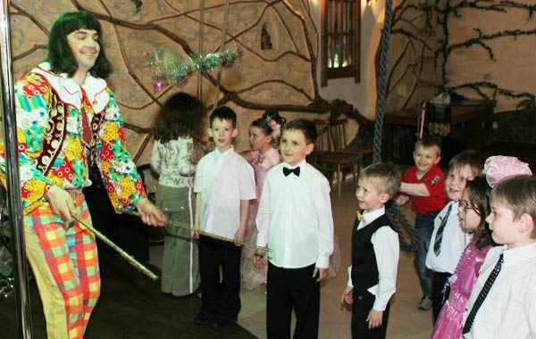 Выпускной бал ребятишек родители проводят в уютном зале загородного ресторана "Козацкий стан" с цирковым представлением клоуна и дальнейшими играми с детьми на этаком праздничном прощальном вечере со своим детским садиком.
