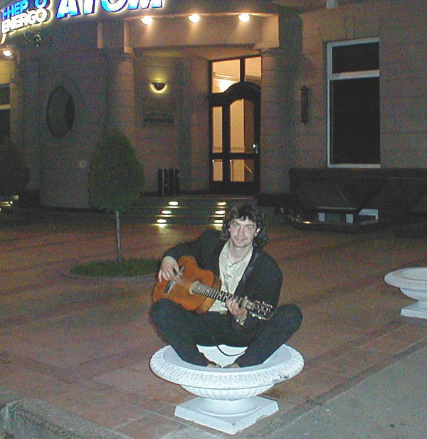 Киев, идя с вечеринки, отдыхаем присевши и с песней