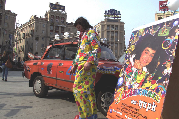Киев, майдан Независимости, 1 апреля, от меня развлечения, фотовыставка, а остальные клоуны то, в Одессу уехали, на Комедиаду, такой стратегический объект, на меня одного оставили